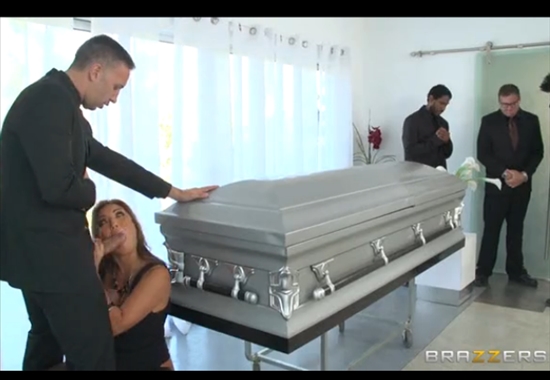 Похотливая вдова жаждет сексуального утешения на похоронах мужа