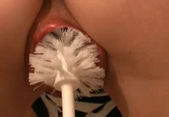Милфа творит жесть с щеткой для унитаза, шокирующая мастурбация!