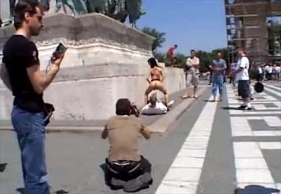 Порно модель дала при всех на публике прямо в центре города