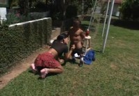Чистильщик бассейна трахает на улице молодую хозяйку