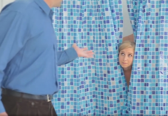 Грудастая дочь в нижнем белье соблазнила отца на секс в ванной