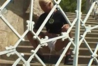 Обоссала ступеньки через кружевные трусики