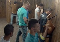 Бисексуальная большая оргия в ангаре локомотивного депо